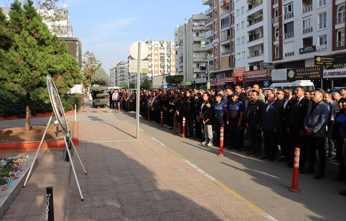 Belediye hizmet binası önündeki Türk bayrakları, İstiklal Marşı eşliğinde yarıya indirildi. Törenin sonunda Atatürk büstüne, O’nun en sevdiği çiçeklerden olan Kasımpatı bırakıldı. Anma törenine katılan çocukların da çiçeklerle Atatürk’ü anması, duygusal görüntüler oluşturdu.