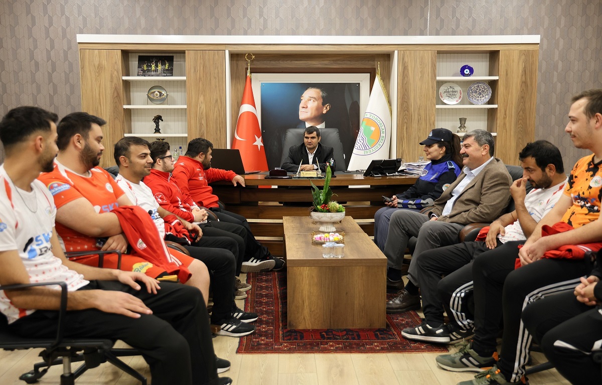 Ziyarete; Mersin Ampute Futbol Takımı, Uzay Spor Okullarından judo branşında başarılar elde eden milli sporcular ile birlikte mental retardasyon (zeka geriliği) tanısı bulunan Adem Sarımsak (31) ve Damla Kınna (23) katıldı. Kort tenisinde Türkiye birinciliği bulunan Adem Sarımsak, temsili olarak başkanlık koltuğuna otururken, 100 metre koşusu sporcusu Damla Kınna ise Zabıta Müdürü görevini üstlendi.