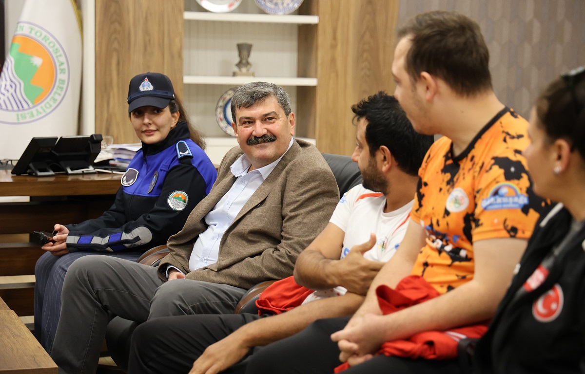 Başkan Yıldız, “Bugün sizleri burada, Toroslar Belediye Başkanlığı makamında ağırlamanın mutluluğunu yaşıyorum. Hepinizin hayatımıza kattığı neşe, sevgi ve enerji bizim için çok kıymetli. Sizler azmin, sevginin ve kararlılığın en güzel örneklerisiniz.” dedi.