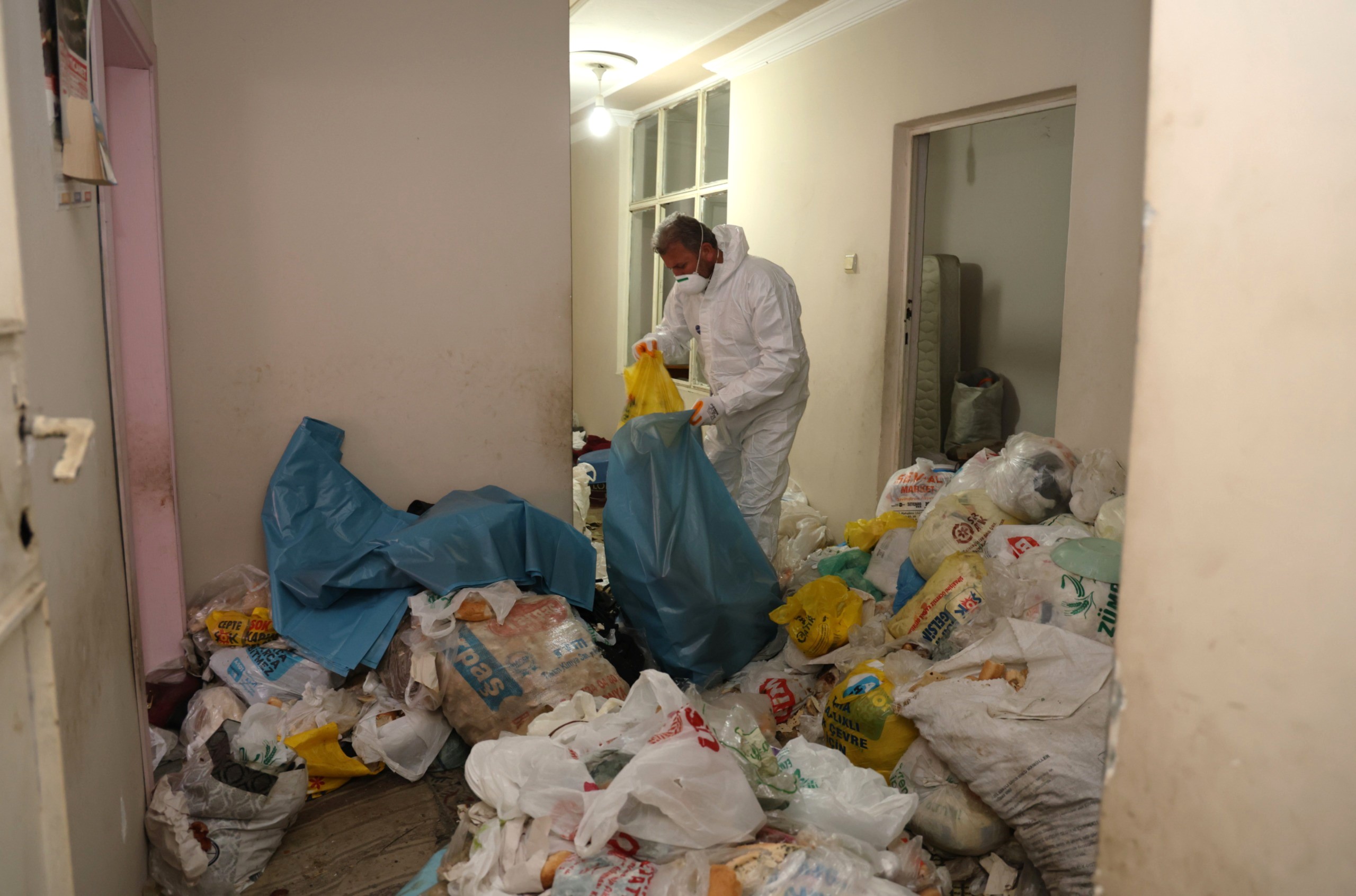 Toroslar Belediyesi, gelen ihbar üzerine harekete geçerek bir evden yaklaşık 8 ton evsel atık çıkardı.
