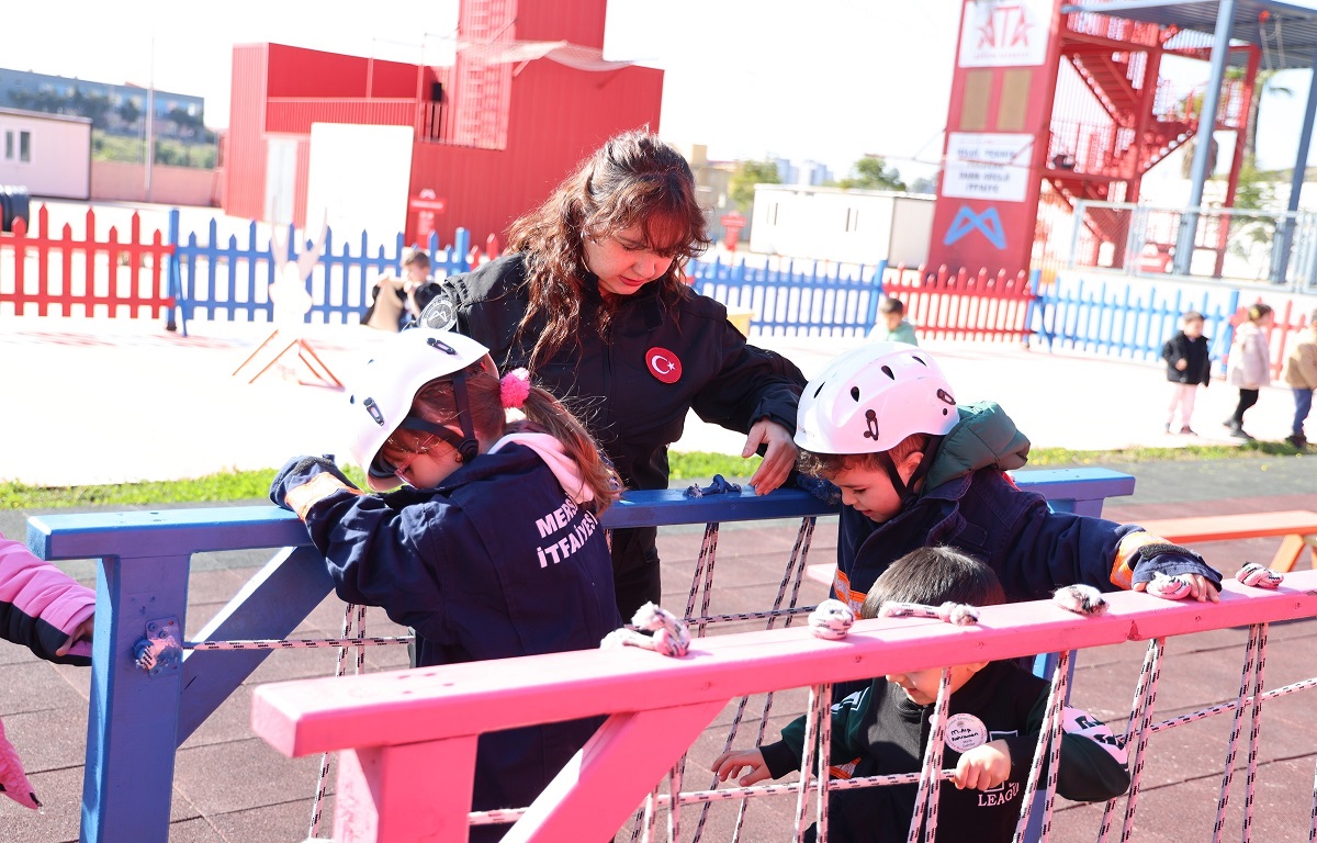 Teorik eğitimin ardından öğrenciler çocuk eğitim alanına geçti. Burada itfaiyeci kostümleri giyen minikler, özel olarak hazırlanan parkurda heyecan dolu anlar yaşadılar.