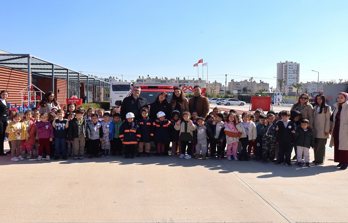 Osmaniye ve Akbelen Gündüz Bakımevlerinin minik öğrencileri, Sivil Savunma Günü etkinlikleri kapsamında Mersin Büyükşehir Belediyesi İtfaiye Dairesi Başkanlığı bünyesinde faaliyet gösteren ATA Eğitim Merkezi’ni ziyaret ederek itfaiyecilik mesleğini yakından tanıdı.