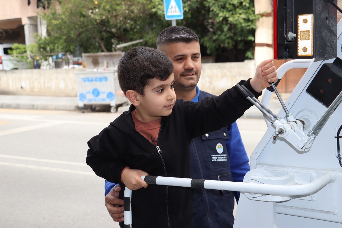 TOROSLAR’DA MİNİK MİRAÇ’IN ÇÖP KAMYONUNA BİNME HAYALİ GERÇEKLEŞTİ
