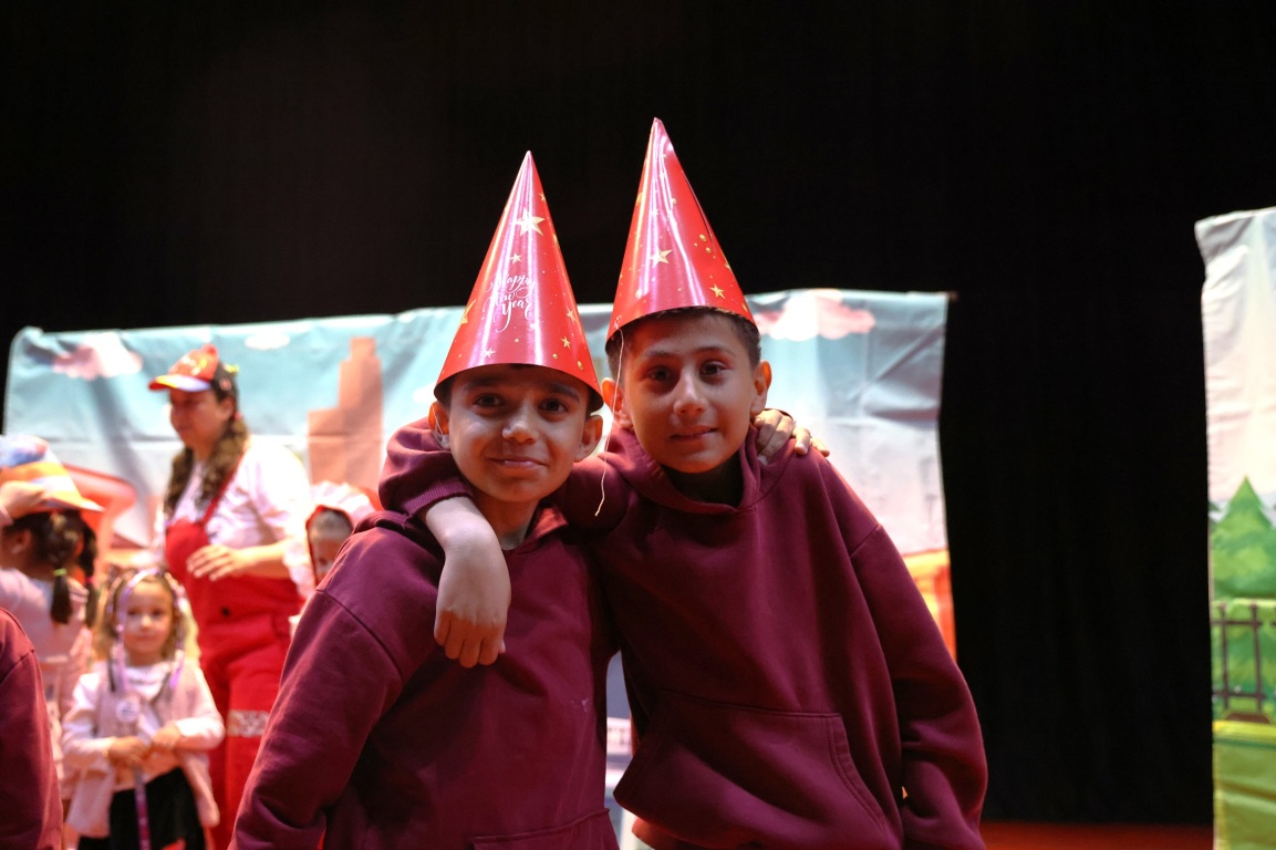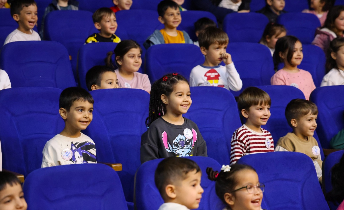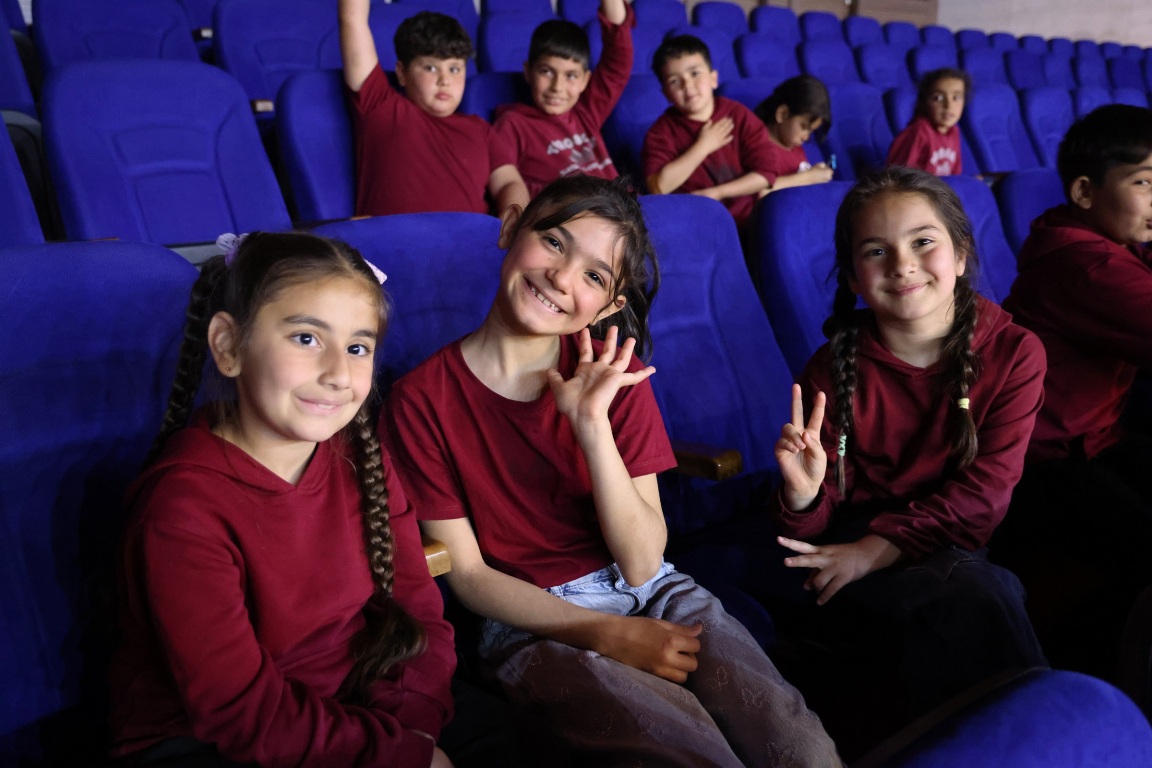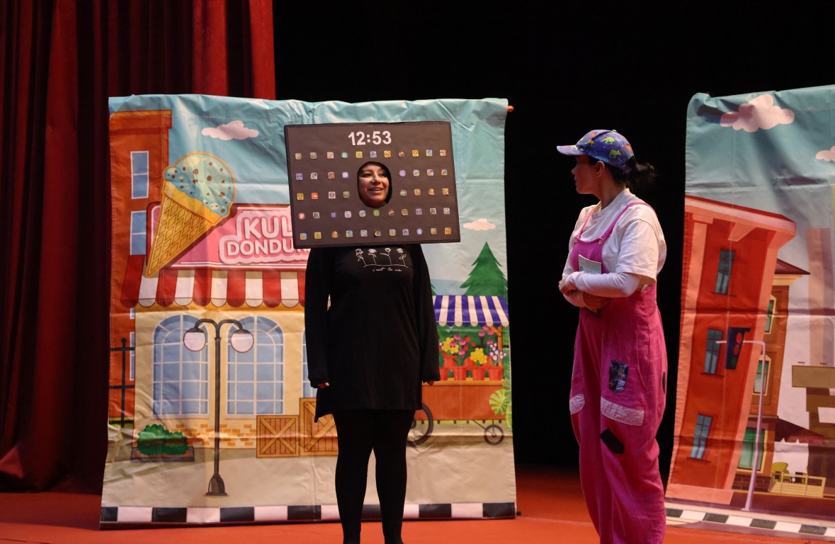 Öğretmenleriyle birlikte oyunu izleyen öğrenciler, dijital dünyayla sağlıklı bir ilişki kurmanın önemini eğlenceli bir anlatımla kavradı.