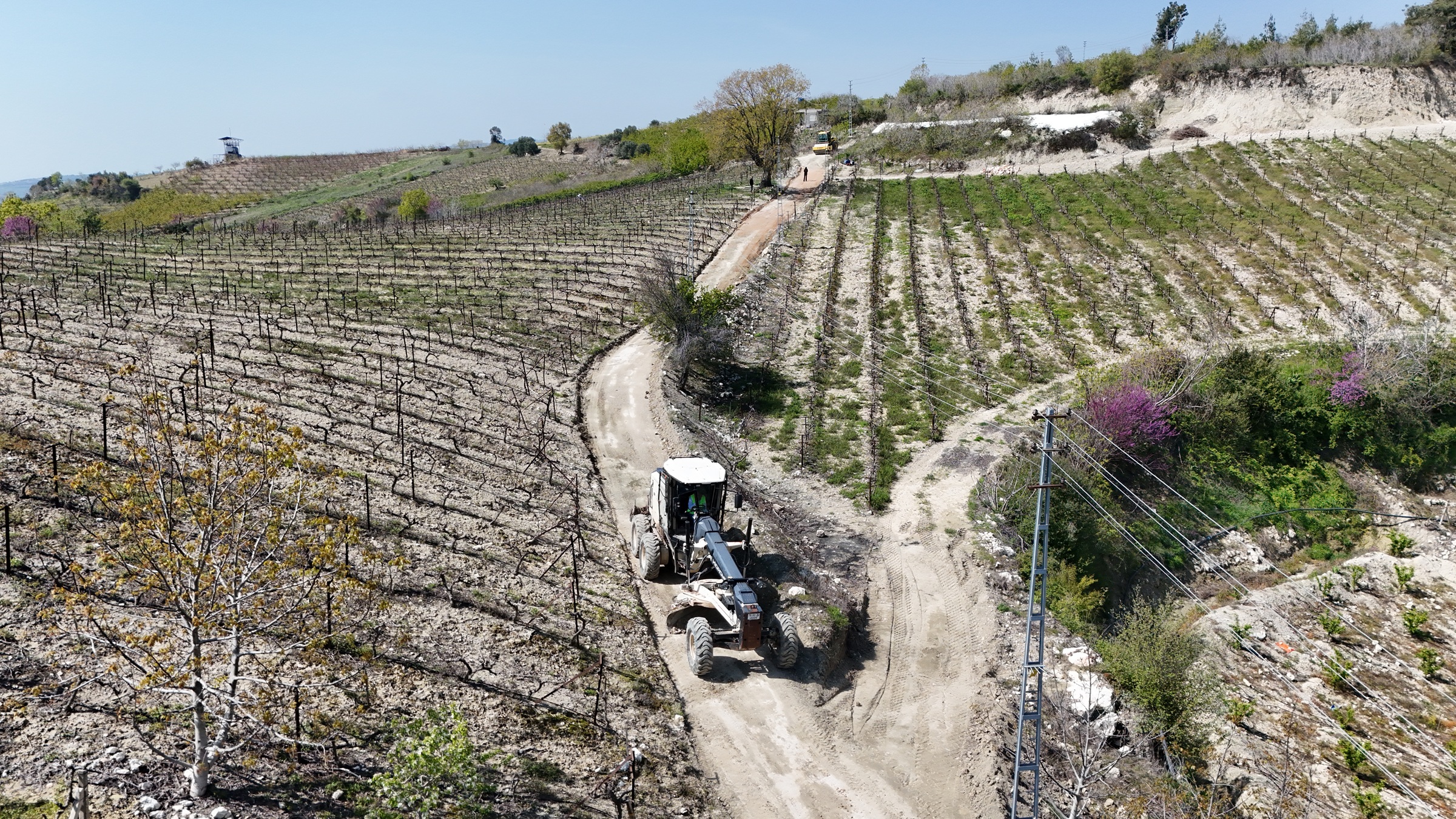 Belediye Fen İşleri Müdürlüğü ekipleri, bir yandan ilçe genelindeki yollarda asfalt serim ve sathi kaplama çalışmalarını sürdürürken, bir yandan da tarımsal üretimin yoğun olduğu kırsal mahallelerdeki yolları bakımdan geçiriyor.